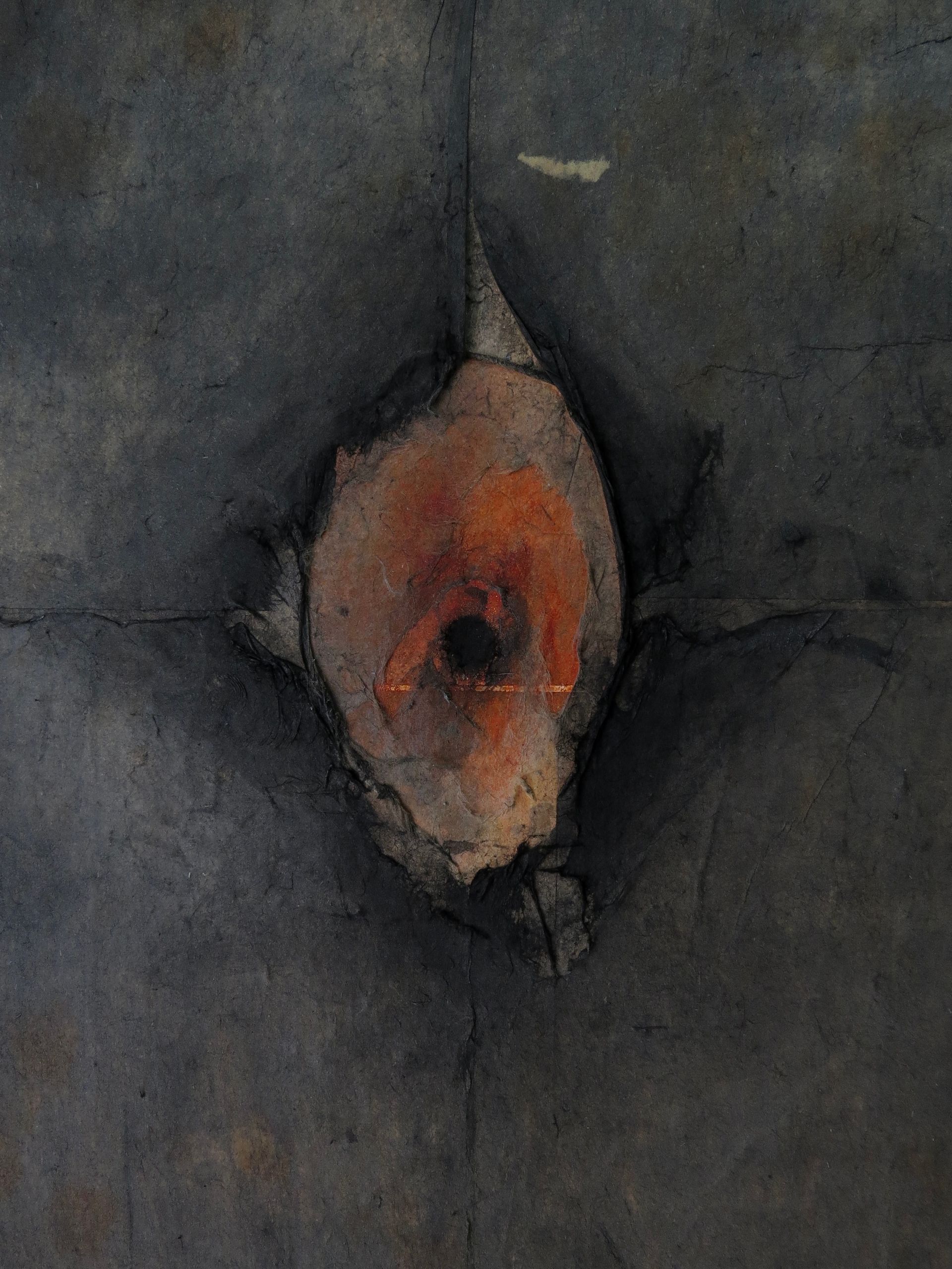 Higashi paints on wooden panels using a layered and subtractive process. She begins with a white primer, then applies acrylic paint in several coats. Through scratching, rubbing, and scraping, she removes pigment to reveal underlying textures. She often incorporates mineral pigments, charcoal, animal glue, or tea, each leaving organic traces. For her, scars, marks, and voids are not imperfections but essential elements of expression, echoing Japanese aesthetics of wabi-sabi and mono no aware. Her works embody a cycle of destruction and regeneration, where every surface becomes a record of vulnerability, resilience, and renewal.