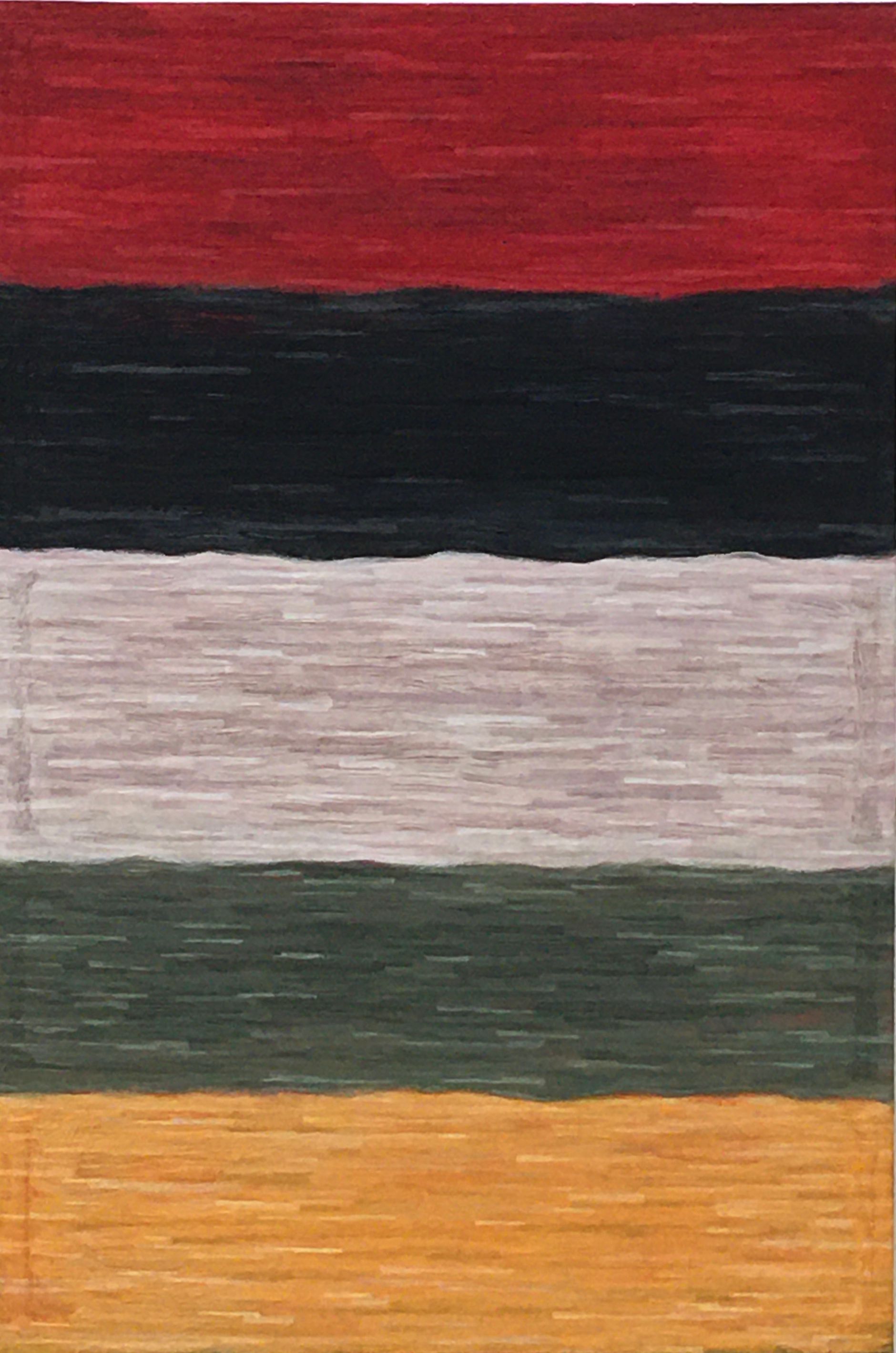 Masanori Maeda's paintings are structured around horizontal or vertical layered blocks of alternating colours. Involving constant negotiation between calm and vitality and a balance between light and shadows; plunging the viewer into an almost meditative state.