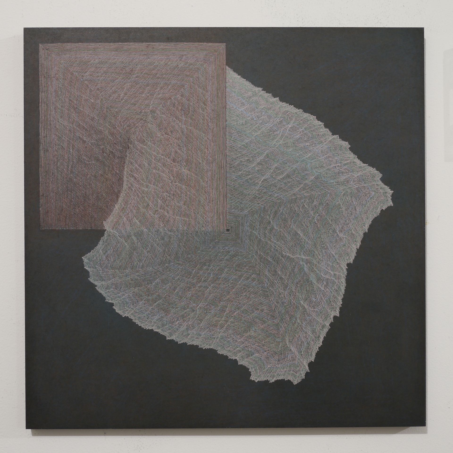 Takashima describes his works as “crystals of lines”; forms generated not by representation, but by the inherent properties of the materials themselves. His titles reflect this philosophy: Drawing for Brush, Ink and Paper; Drawing for Pencil Sharpener, Colored Pencil and Canvas; Drawing for Metalpoint and Paper. All of this forming the nomenclature of classical instrumental compositions.